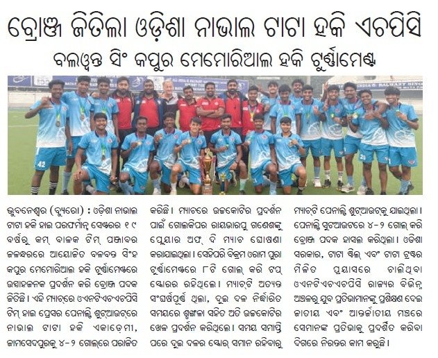 Odisha Naval Tata Hockey HPC (U-19 Boys) Clinch Bronze Medal at Balwant Singh Kapur Memorial Hockey Tournament 2025
